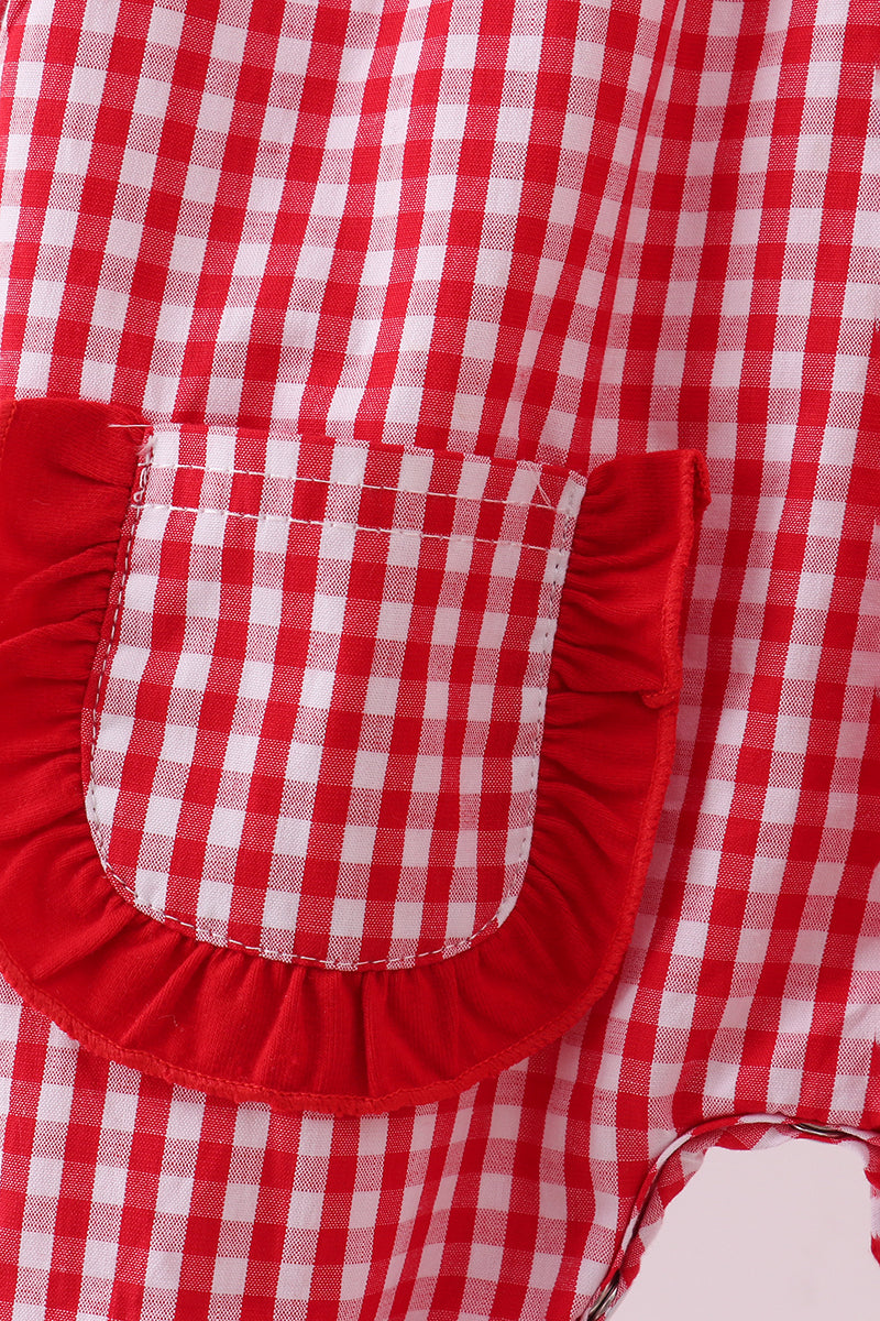Red woven Christmas tree reindeer smocked romper